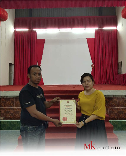 Our Corporate Social Responsibility project, stage curtain for primary school hall. #MkCurtain #Curtain #Langsir #CSR #School #SJKCSanYu MK Careline 018-229 5000